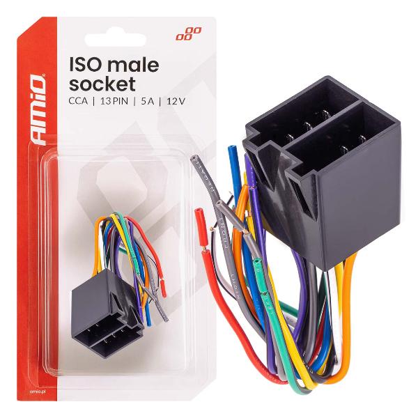 Conector macho integrado ISO de 13 pines profesional, diseñado para su uso en instalaciones eléctricas de vehículos. Fabricado con tecnología CCA (aluminio revestido de cobre)